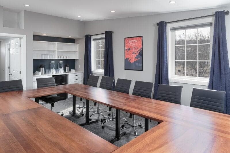 - The space has been thoughtfully outfitted for your comfort and use. There are 6 tables and 15 office chairs that can be reconfigured to suit your individual needs.